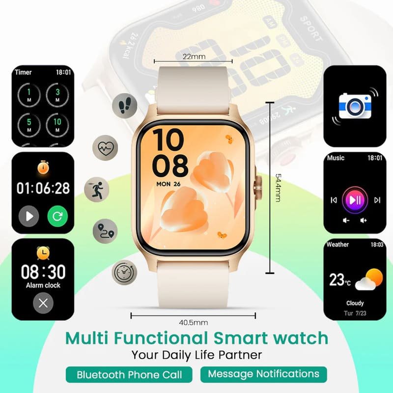 - ????Versatile Features for Convenience: Enjoy added utilities like weather updates, a calculator, music and camera controls, alarms, a stopwatch, timer, games, and a “find my phone” feature with our smartwatch women. Bluetooth connectivity ensures a stable connection in long range.