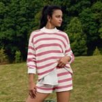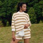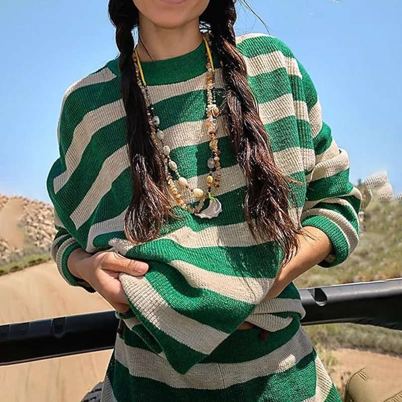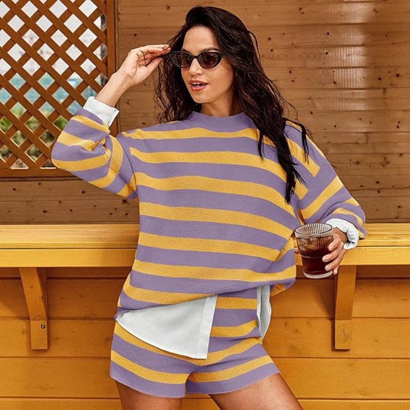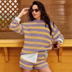 Women’s Casual Fashion 2-piece Set Long Sleeve Loose Striped Top